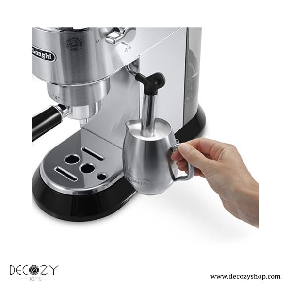 اسپرسوساز خانگی دلونگی مدل EC685، انتخابی ایدهآل برای طرفداران قهوه اصیل ایتالیایی در خانه است. این دستگاه با طراحی شیک و بدنهای از استیل ضدزنگ، جلوهای مدرن به آشپزخانه شما میبخشد. با توان 1350 وات و فشار بخار 15 بار، اسپرسوساز دلونگی EC685 قادر است قهوهای غلیظ و معطر با خامه دلپذیر درست کند؛ درست مانند یک باریستای حرفهای. این اسپرسوساز مجهز به سیستم کاپوچینوساز دستی است که به شما امکان تهیه کاپوچینو، لاته و انواع نوشیدنیهای قهوهای را با کف شیری خامهای میدهد. همچنین سینی چکهگیر قابل تنظیم، امکان استفاده از فنجانهای بلند و کوتاه را فراهم میکند. مخزن آب جداشونده با ظرفیت 1 لیتر، استفاده و شستشو را بسیار آسان کرده است. اگر به دنبال یک دستگاه با کیفیت، کارایی بالا و ابعاد جمعوجور هستید، اسپرسوساز دلونگی EC685 بهترین گزینه برای شماست. با این محصول میتوانید هر روز قهوهای تازه و خوشطعم را در منزل خود تجربه کنید و لذت کافیشاپ را به خانه بیاورید. همین حالا سفارش دهید و روز خود را با یک فنجان قهوه عالی آغاز کنید!
